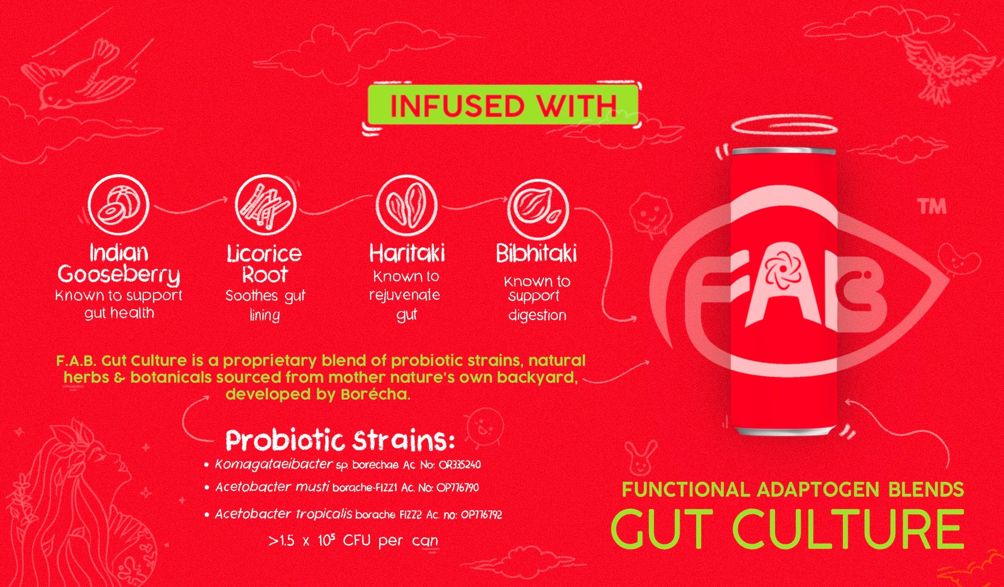 Ingredients: Kombucha (Water, Live Probiotic Kombucha Culture (Komagataeibacter sp., A. musti, A. tropicalis), Cane Sugar, Assam Black Tea, Darjeeling Black Tea), Nature Identical Flavouring Substances (Watermelon & Mint), Indian Gooseberry, Bibhitak, Haritaki, Licorice Root, Carbon Dioxide (INS 290)