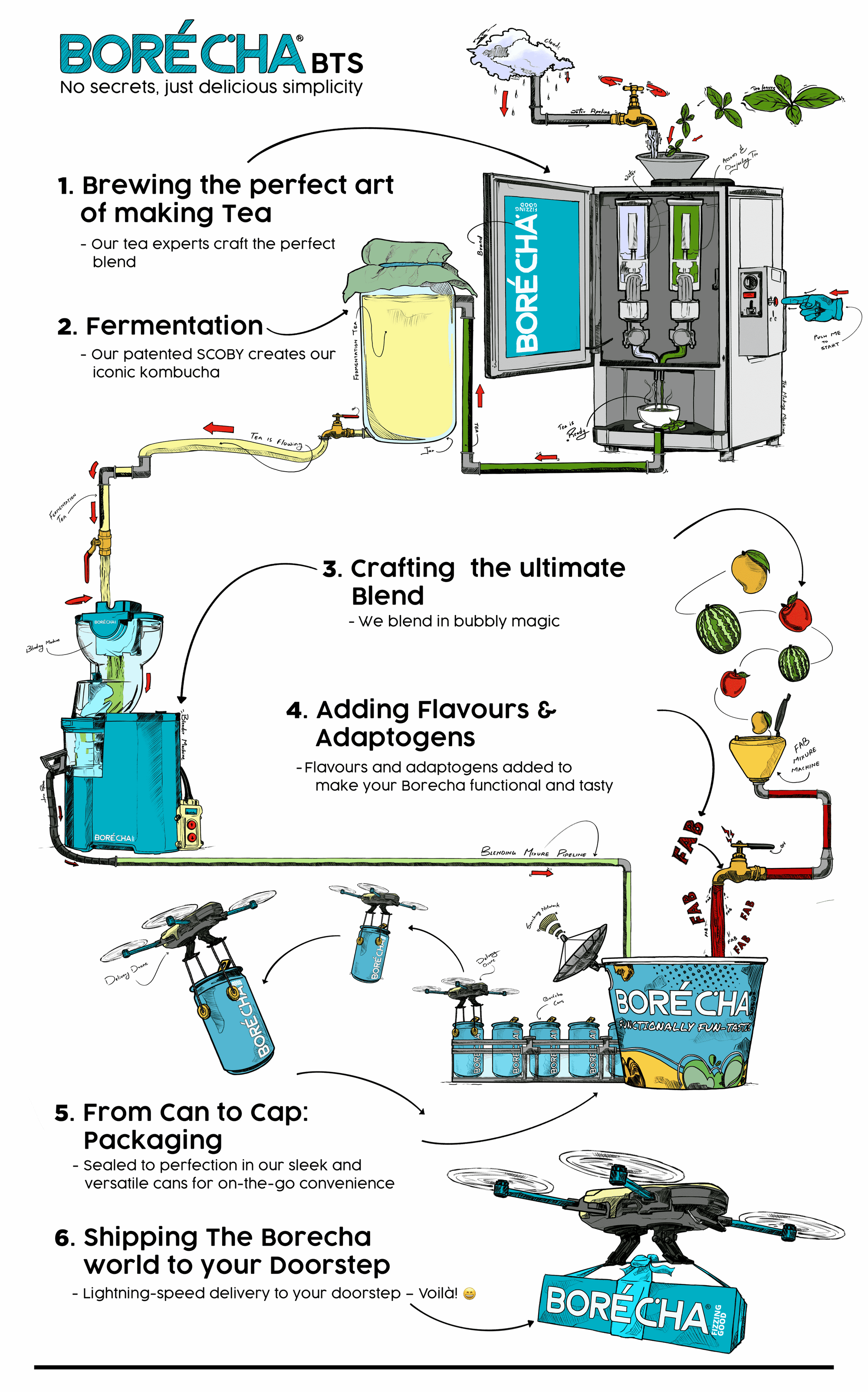 Borecha uses premium organic ingredients and a longer fermentation process, ensuring the highest quality and low sugar content with abundant health benefits of Kombucha.